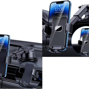 phone holders for your car Phone Holder Car [Military Grade Suction Ultra Strong Base] Cell Phone Car Holder 3 in 1 Dashboard Windshield Air Vent Hands-Free for Dash Mounting Kits iPhone Android